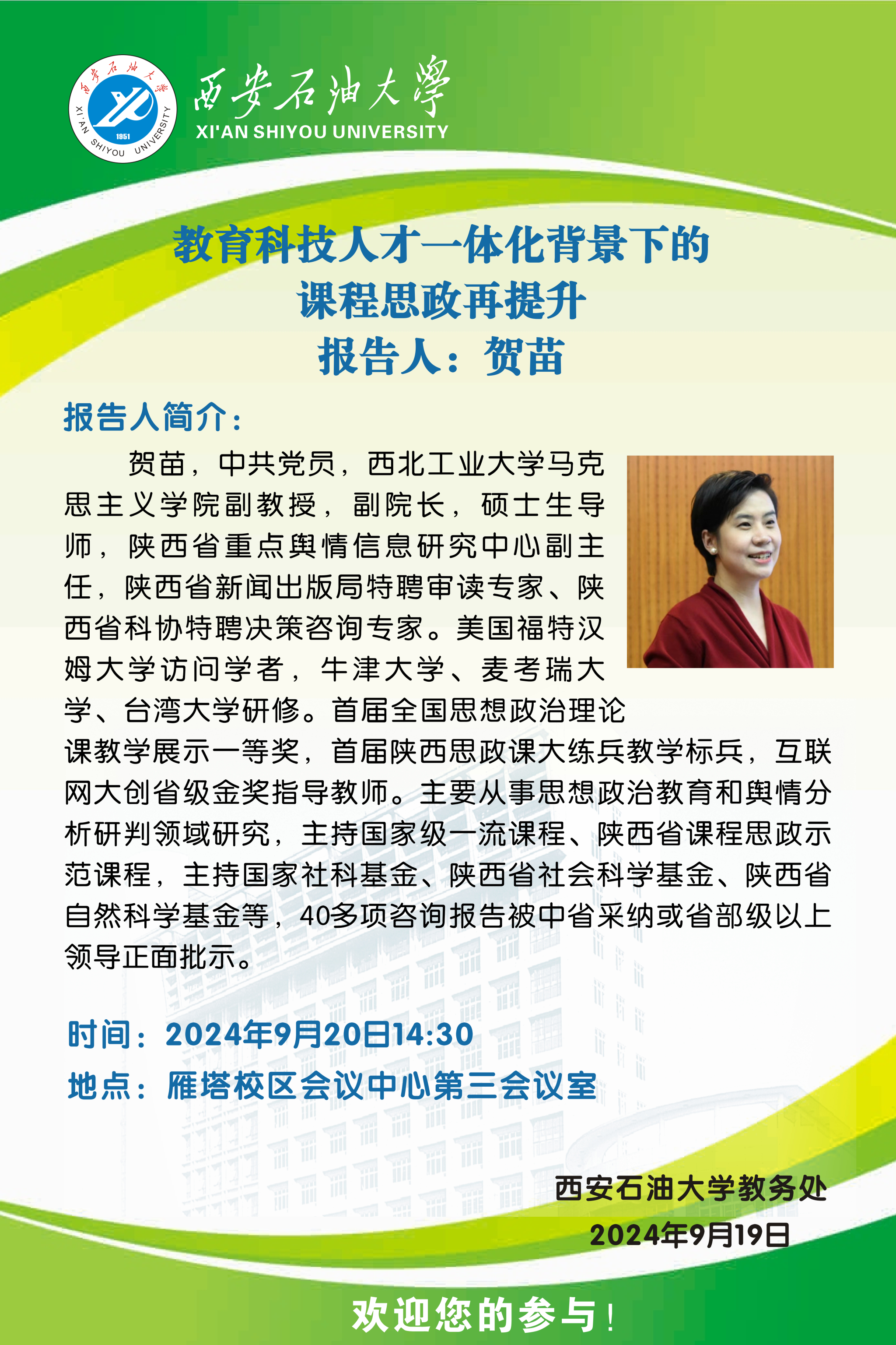 報(bào)告地點(diǎn):鄠邑校區(qū)弘石報(bào)告廳